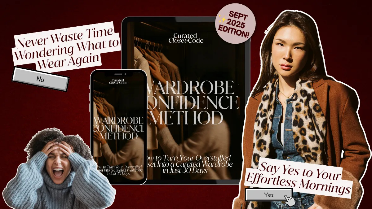 It’s a 30-day, step-by-step digital program that teaches you how to transform your closet from chaotic to confident. You’ll discover your personal style formula, edit your wardrobe with clarity, and create outfit combinations that actually work for your lifestyle and body.